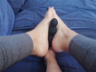 Mi sega con i piedi, si masturba e si fa sborrare addosso