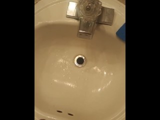 Wet pussy play in my friends guest bathroom
