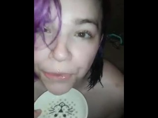 Kitten loves daddy's piss everywhere