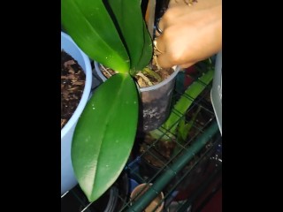 Sexy plant watering at night. Very wet.