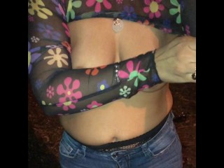 Changing in public into see through top in public
