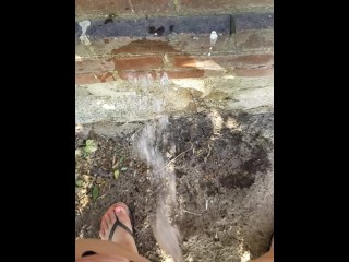 Short Girl Pees Like A Boy Off Porch Stairs