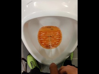 Pissing and jerking in public urinal