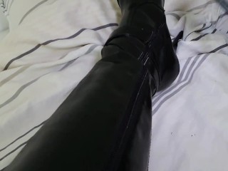 Whip spanking on leather boots