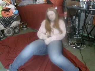 Redhead Masturbating Through Her Jeans with a Lovense Domi ( Hitachi )