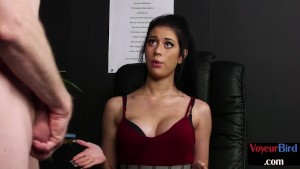 Busty voyeur babe watching guy tugging