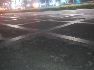 Petite girl skating almost naked at a public skate park