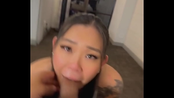 asian babe deepthroat big dick and swallows cum whole POV BLOWJOB