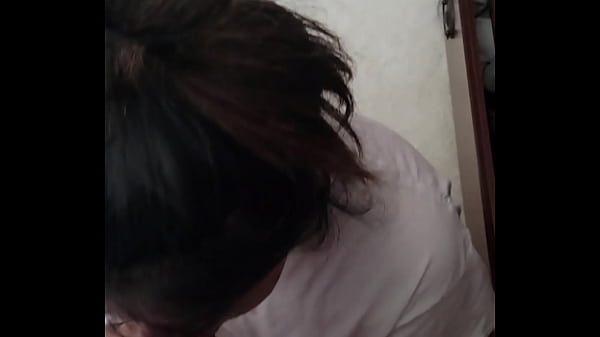 Slutina sucking my cock and stroking it.