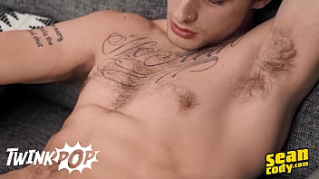 Horny Willy Lies Back On The Couch And Strokes His Cock Until He Cums On His Belly - TWINKPOP