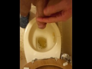 Long morning piss from long cut cock