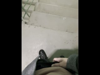 4К ПОВ Рисковая дрочка в подъезде на лестничной клетке