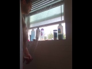 Spurting penis ejaculation in the shower