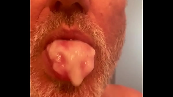 Eating my own cum, my tongue is covered with my cum!