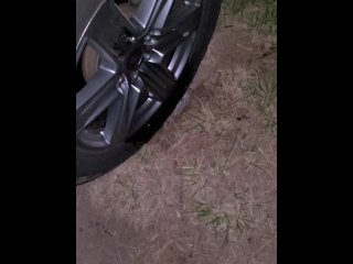 girl piss on tire
