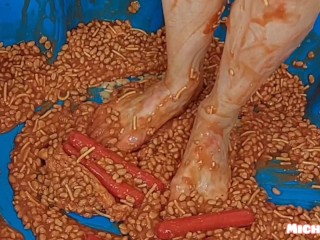 Feet in beans and sausages, foot worship sesy soles