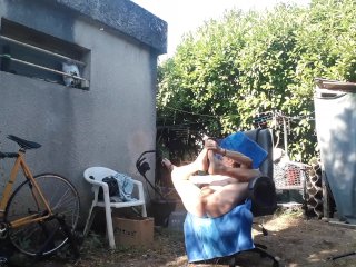 a slut exhibits naked in her garden