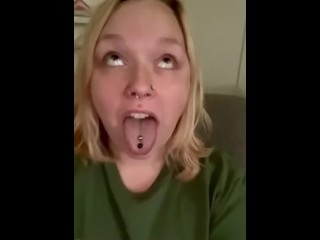 Young hotwife tongue ring blowjob deepthroats cock and swallows a huge load of cum DADDYSCOWGIRL