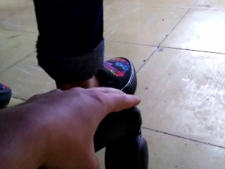 (BLOOPER!) Cruel Teen Girl in Sneakers Tortures A Poor Cock With Her FEET!