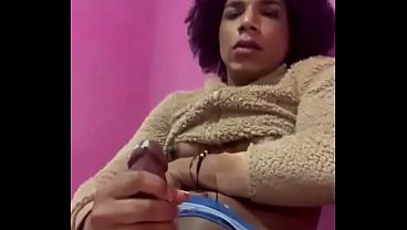 Ebony Tgirl Barbara Pires Jerks Off While Getting Anal Stimulation