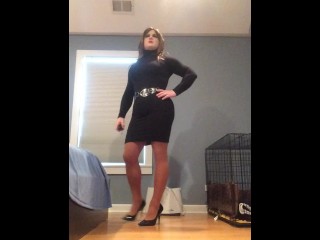 Michaela's tight dress (female mask, big booty, legs, heels, pantyhose, trans, crossdress)