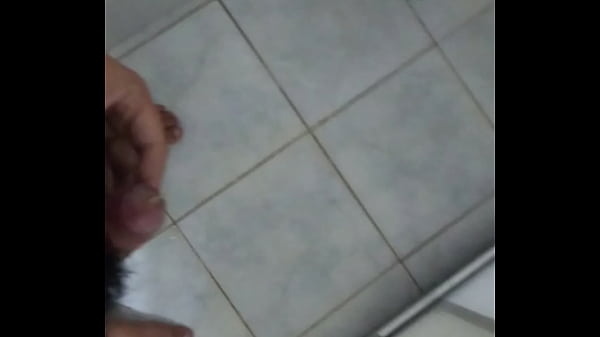 Peludo de pau pequeno gozando no banheiro