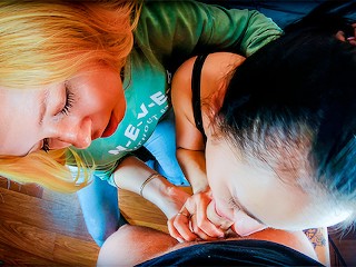 POV Threesome Blowjob - Behind The Scenes - BTS - Made The Cameraman Cum So Hard