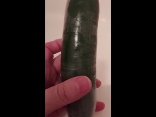 Fucked with a condom covered cucumber (repost)