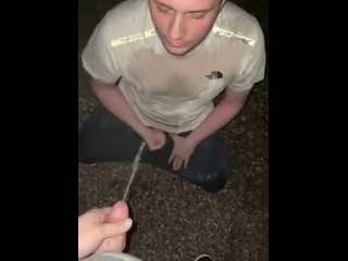 Pissing on a man