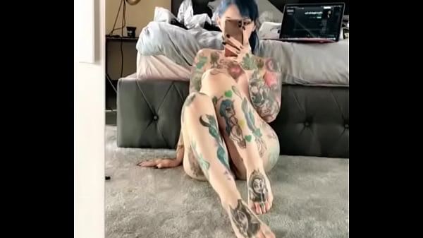 Sexy tattooed blonde plays with a sex toy