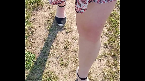 Sunny walk in a short skirt