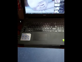 Masturbating my aching cock while watching a hot friend play with her tits for me