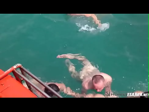 Five naked man trying to catch and fuck young big tits girl while she swimming