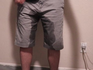 super desperate guy wets shorts