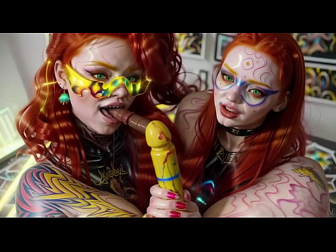 Strange double blowjob by two ginger AI twins dolls