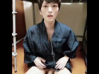 顔モザイク無し!浴衣イケメン日本人がオナ禁後の連続オナニーで大量射精!048